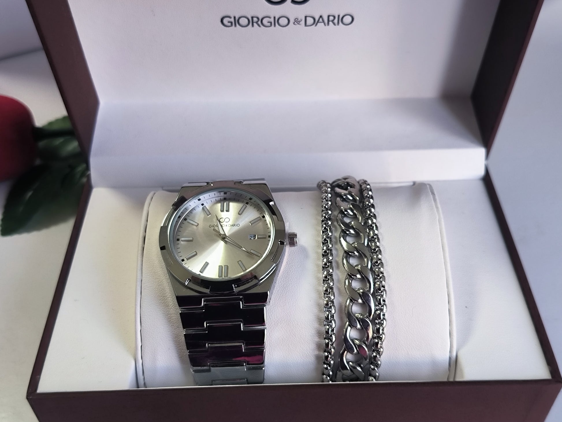 Coffret composé d'une montre en acier et gourmette en acier inoxydable